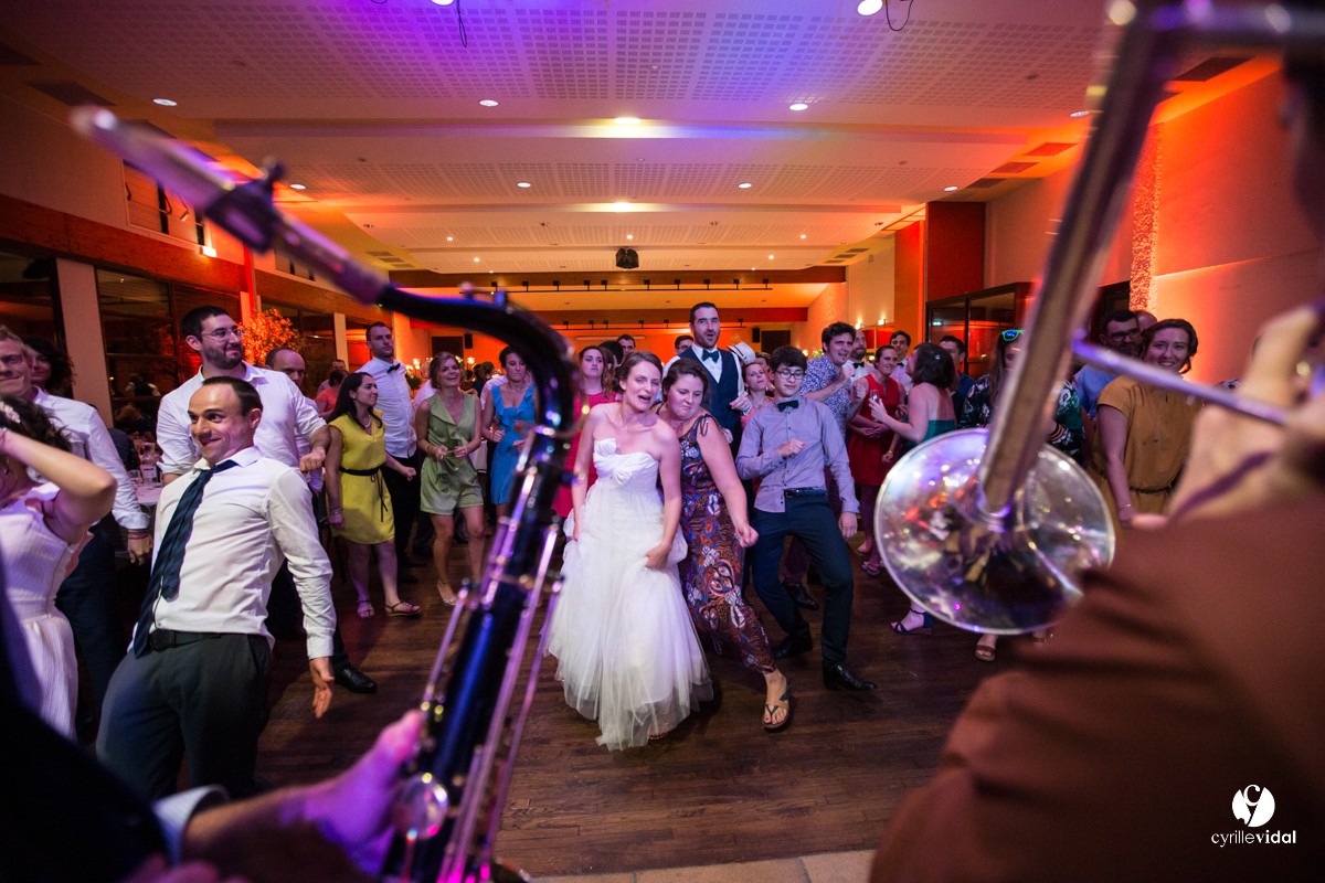 Noémie et Paul sont musiciens et bien évidement la musique était partout pour leur mariage : la Banda Los Campesinos, le Brass Délirium , Los Teoporos … quelle ambiance !!!!!!!!!!!!!!!!!!!!!!! et ce jusqu’au bout de la nuit dans un centre d’animation d’Aire-sur-l’Adour superbement décoré et fleuri par Histoire de fleur by Benoit Saint-Amand.